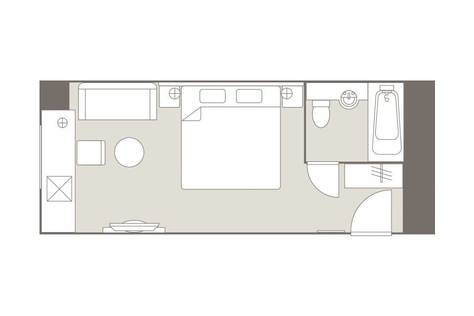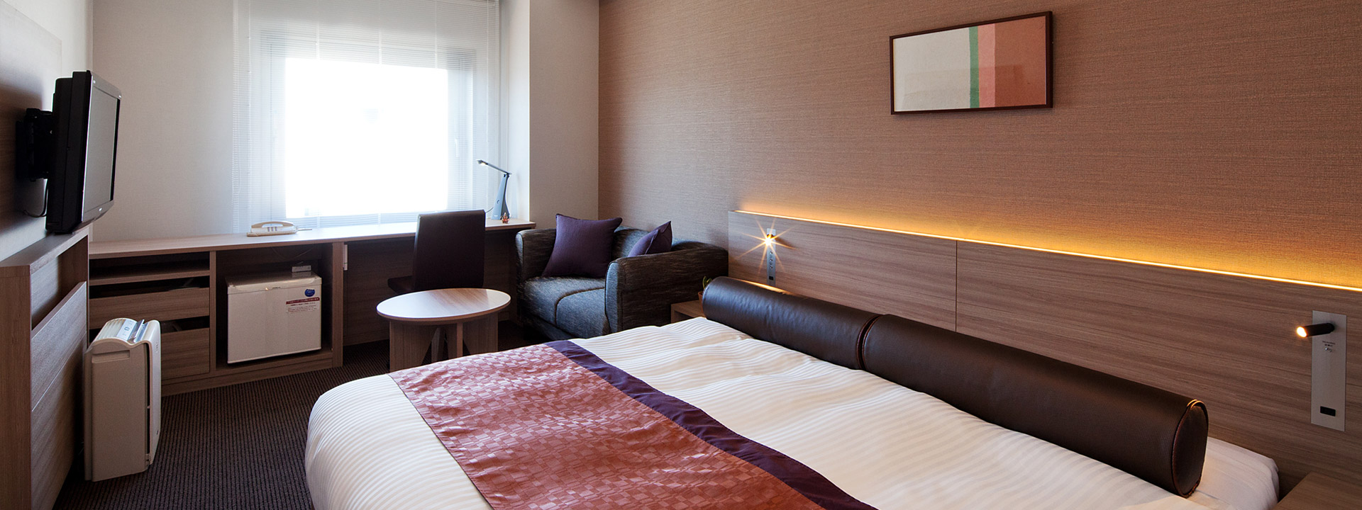 お部屋の間取りはあくまで一例です。面積や家具の配置、備品などはお部屋により異なりますので、あらかじめご了承ください。