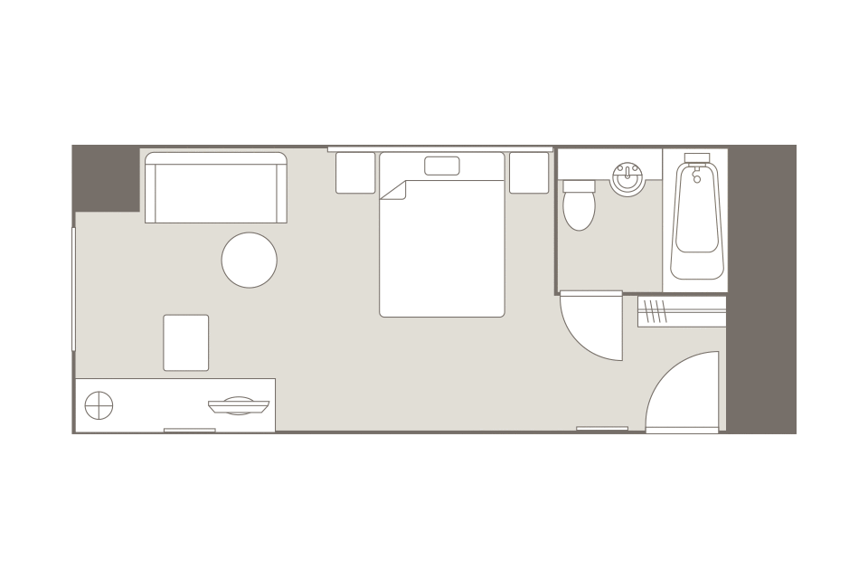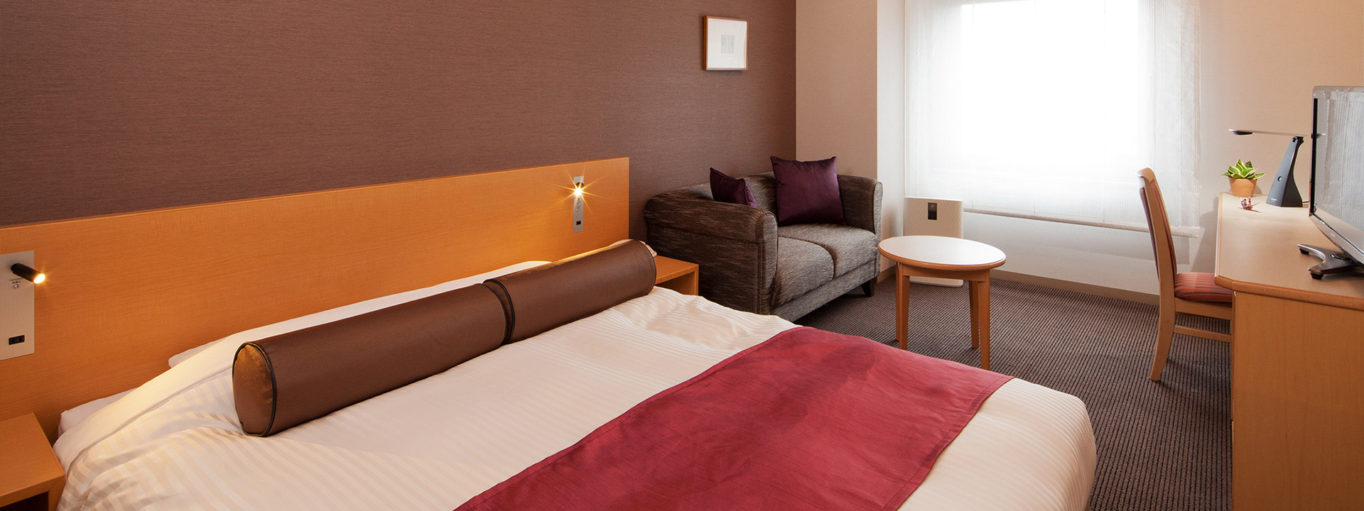 お部屋の間取りはあくまで一例です。面積や家具の配置、備品などはお部屋により異なりますので、あらかじめご了承ください。