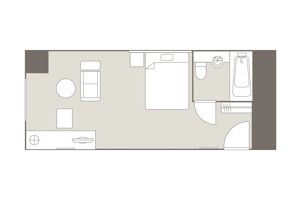 お部屋の間取りはあくまで一例です。面積や家具の配置、備品などはお部屋により異なりますので、あらかじめご了承ください。