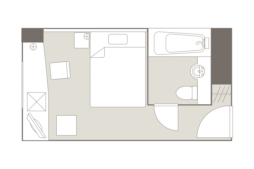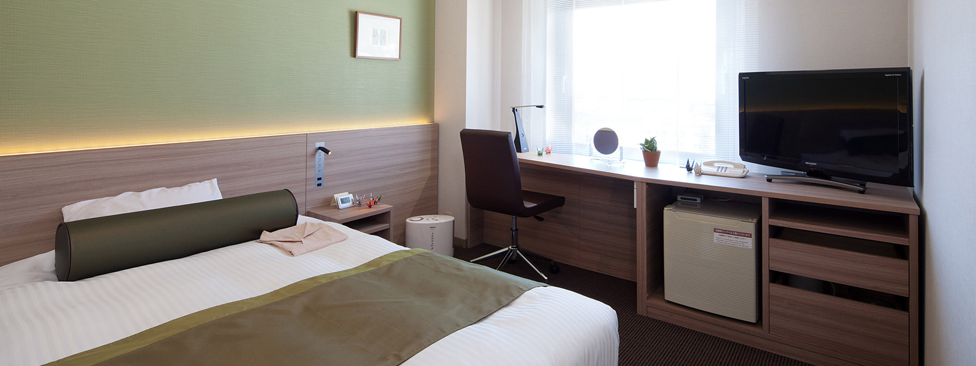 お部屋の間取りはあくまで一例です。面積や家具の配置、備品などはお部屋により異なりますので、あらかじめご了承ください。
