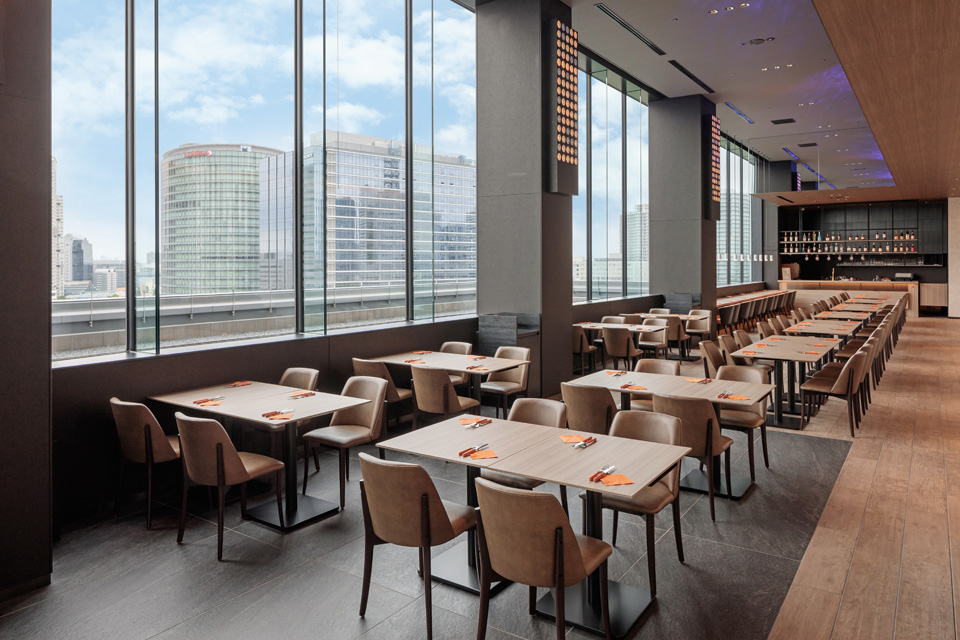 目の前に広がる料理や手にしたグラスの背景には、フォトジェニックな空間が広がります。